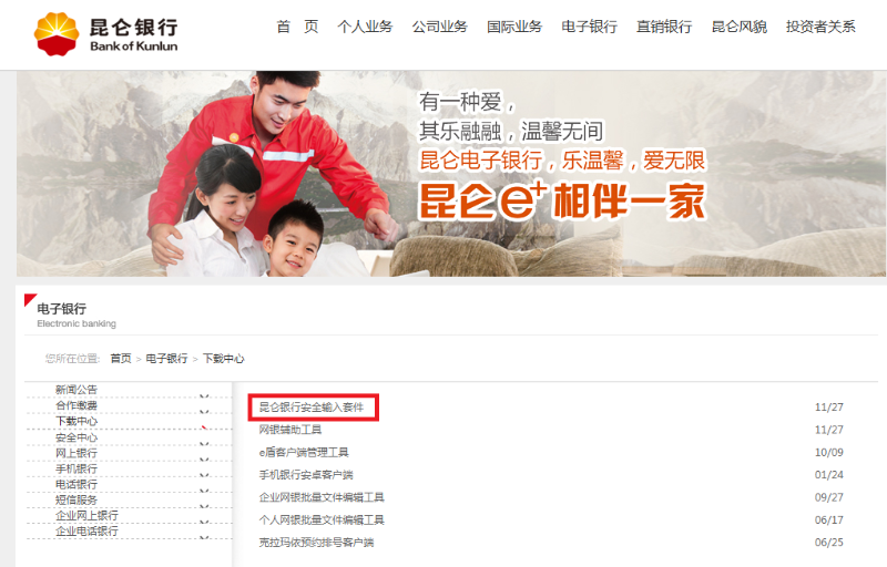 3.請您點擊以下快捷鏈接,進入下載中心,下載“昆侖銀行安全輸入套件”。(http://www.klb.com.cn/kunlbank/489405/489815/index.html)建議您將安裝文件的壓縮包保存到“桌面”以方便查找。